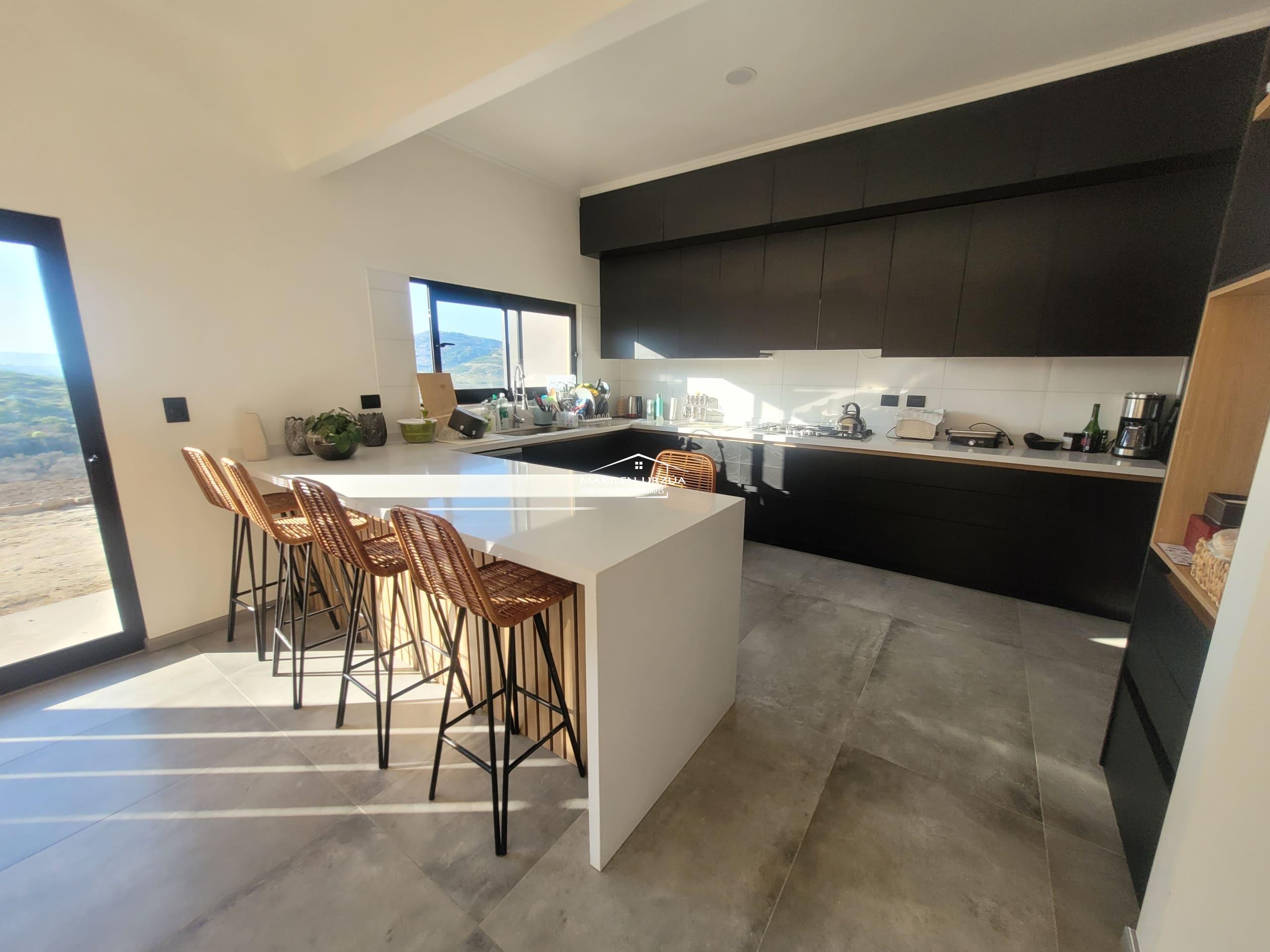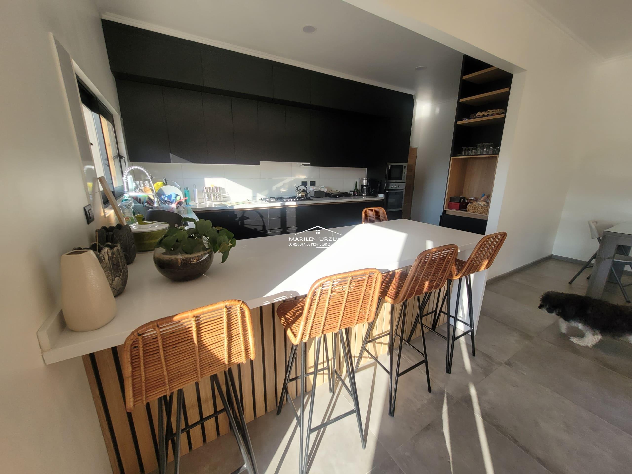 7. GRAN COCINA CONCEPTO ABIERTO, CON ISLA, AMOBLADA Y EQUIPADA,HORNO EMPOTRADO, COCINA ENCIMERA A GAS, MICROONDAS EMPOTRADO, LAVAVAJILLAS, REFRIGERADOR SY BYE S TODO MARCA FDV.