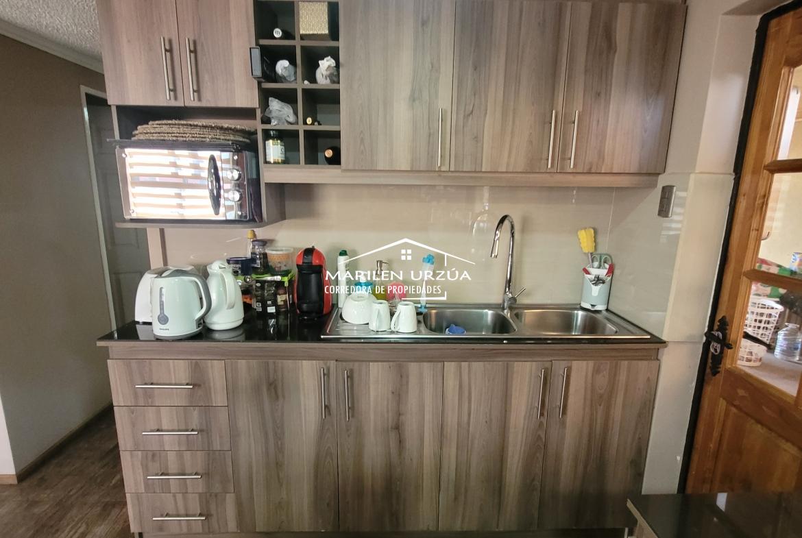 - COCINA CONCEPTO ABIERTO, AMOBLADA Y EQUIPADA COMPLETA, MUEBLES NUEVOS, COCINA Y HORNO EMPOTRADO Y CAMPANA. LO QUE HACE QUE EL ESPACIO SE VEA MAS AMPLIO.
